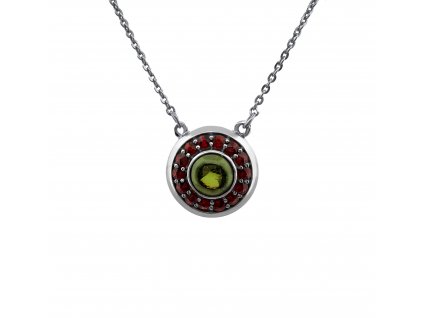 Stříbrný náhrdelník s vltavínem a granáty 2000147990002