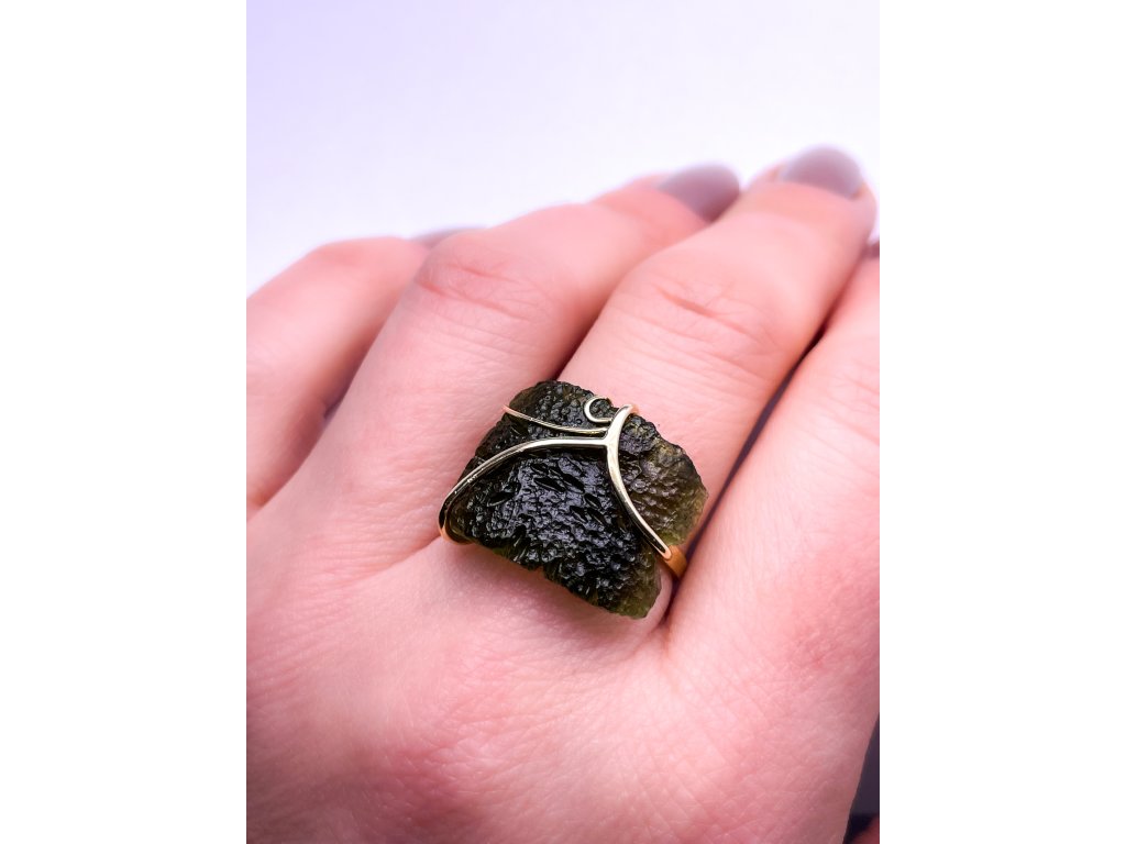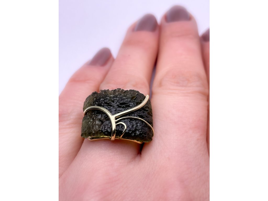Zlatý prsten s neopracovaným vltavínem 2000092070002
