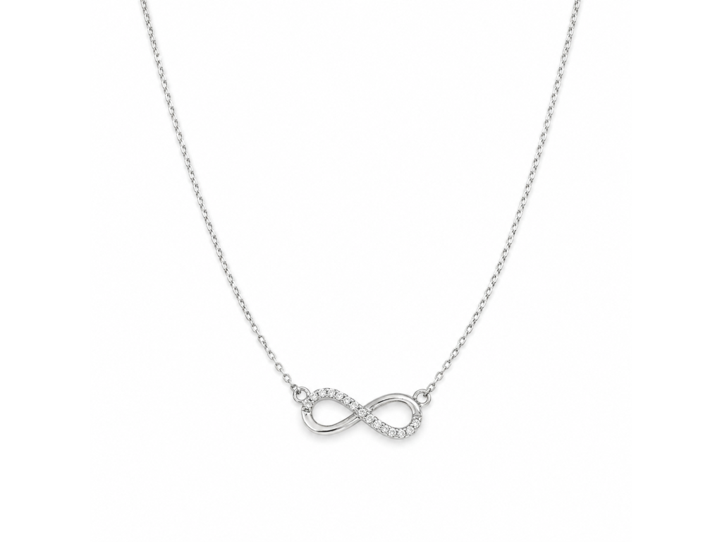 Náhrdelník z bílého zlata 14kt s nekonečnem a zirkony – symbol věčnosti a elegance