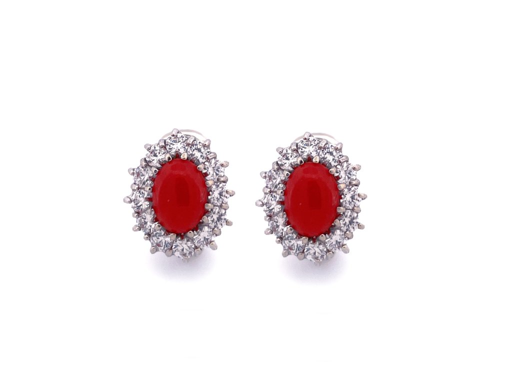Náušnice s korálem a zirkonem v bílém zlatě 2000219320003