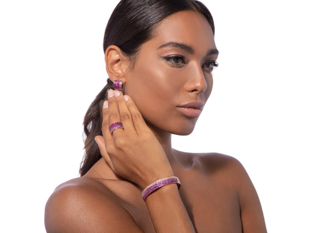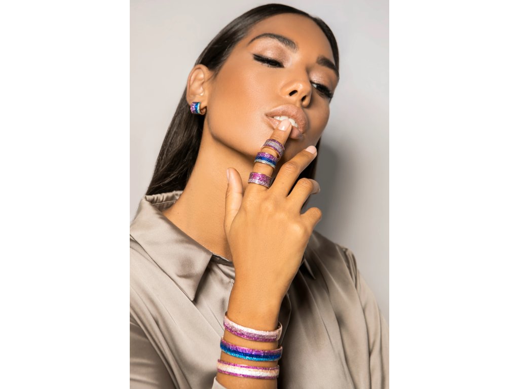 Mikro Pavé Zirkony pro Oslnivý Efekt: Růžové a purpurové zirkony jsou umístěny v mikro pavé stylu, což znamená, že každý kamínek je pečlivě zpracován a přesně umístěn, což vytváří ohromující efekt, který přitahuje pohledy.
