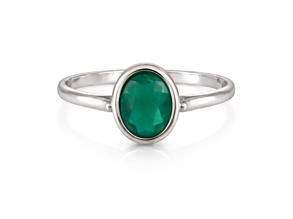 Prsten se zeleným Achátem v bílém zlatě 5170009