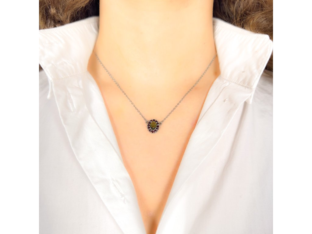 Stříbrný náhrdelník s vltavínem a granáty 2000303520005