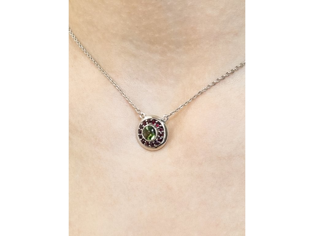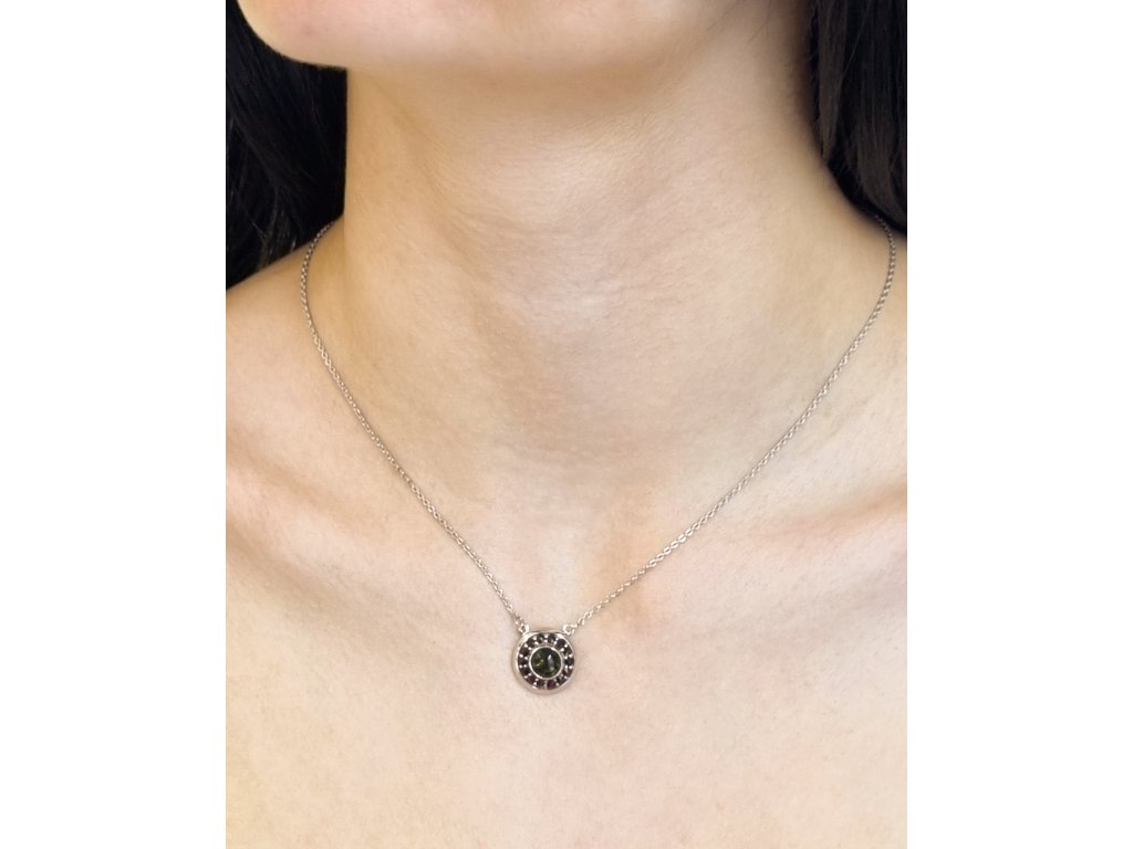 Stříbrný náhrdelník s vltavínem a granáty P2000326560002