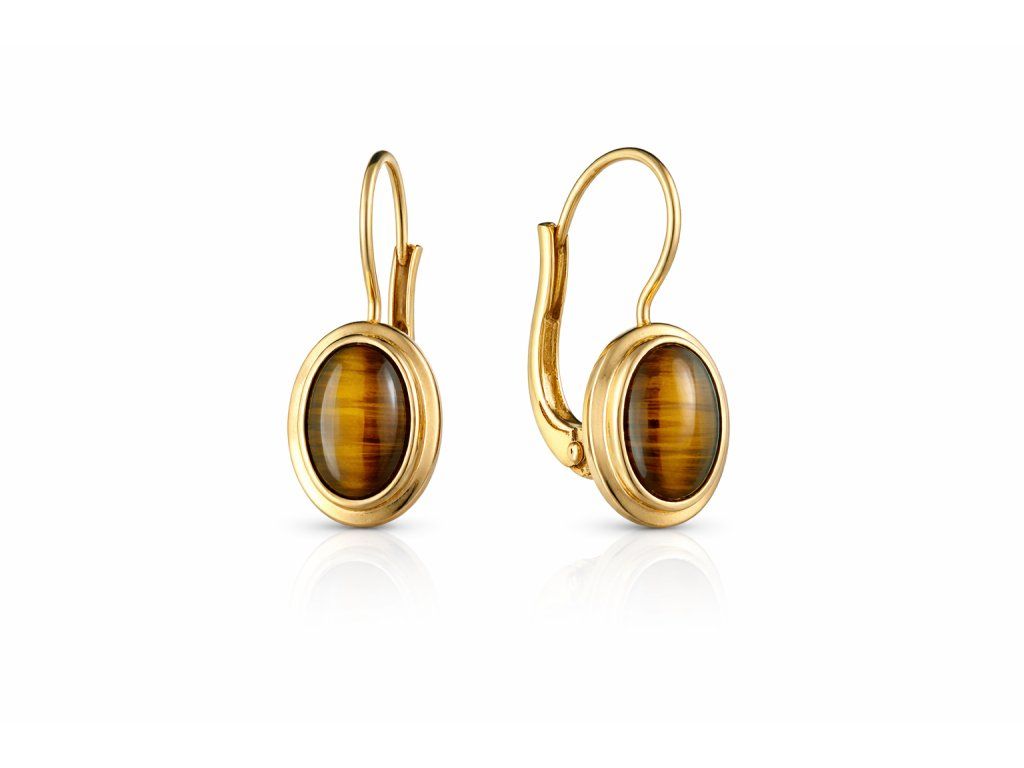 Zlaté náušnice s kameny tygří oko Bena 5160065