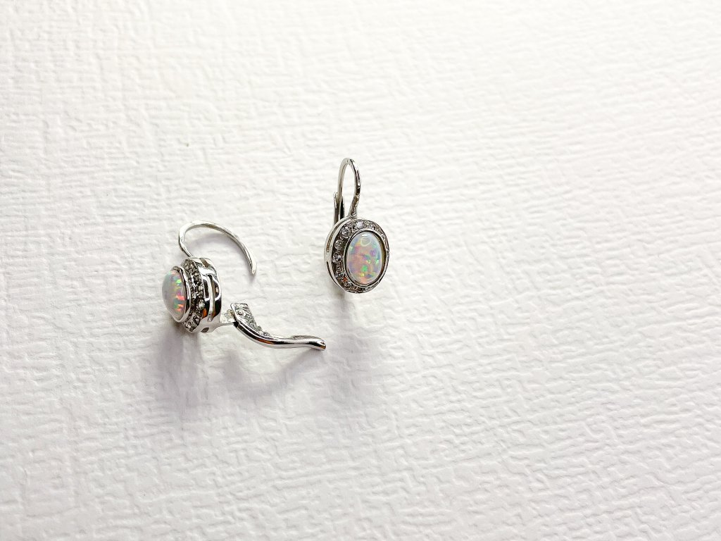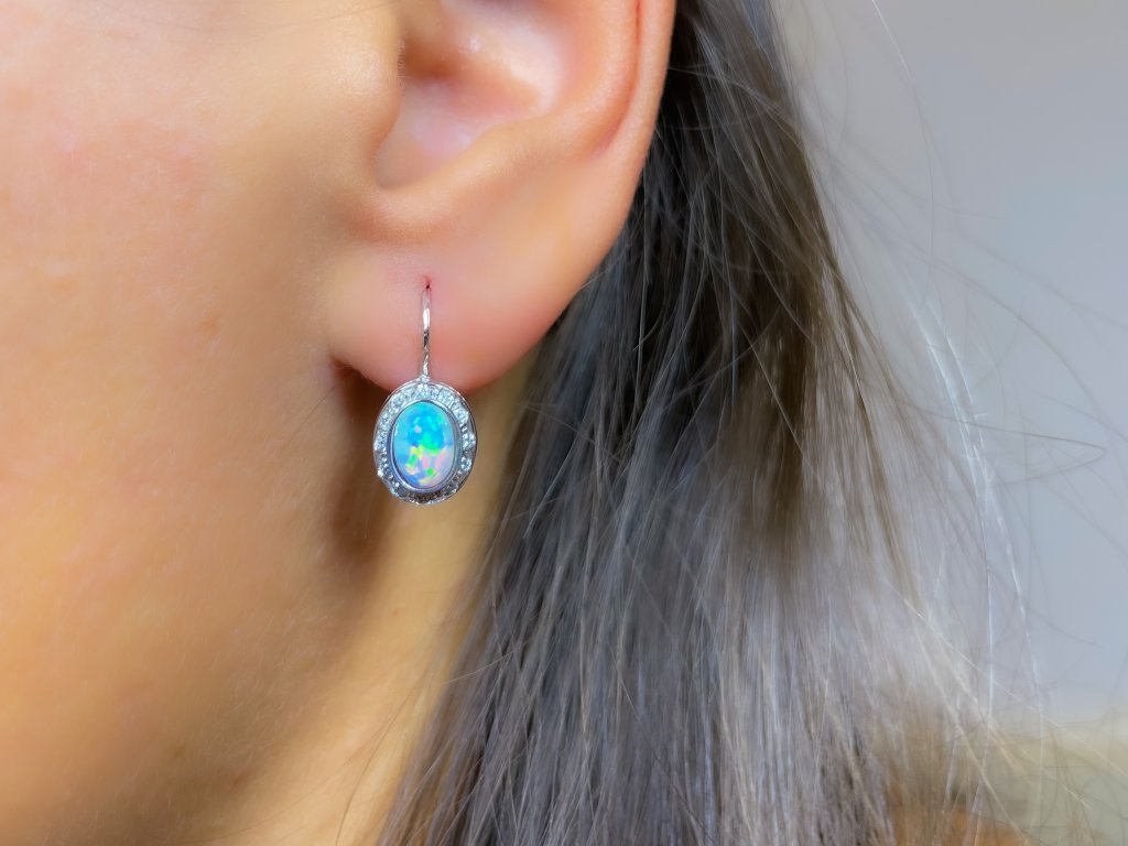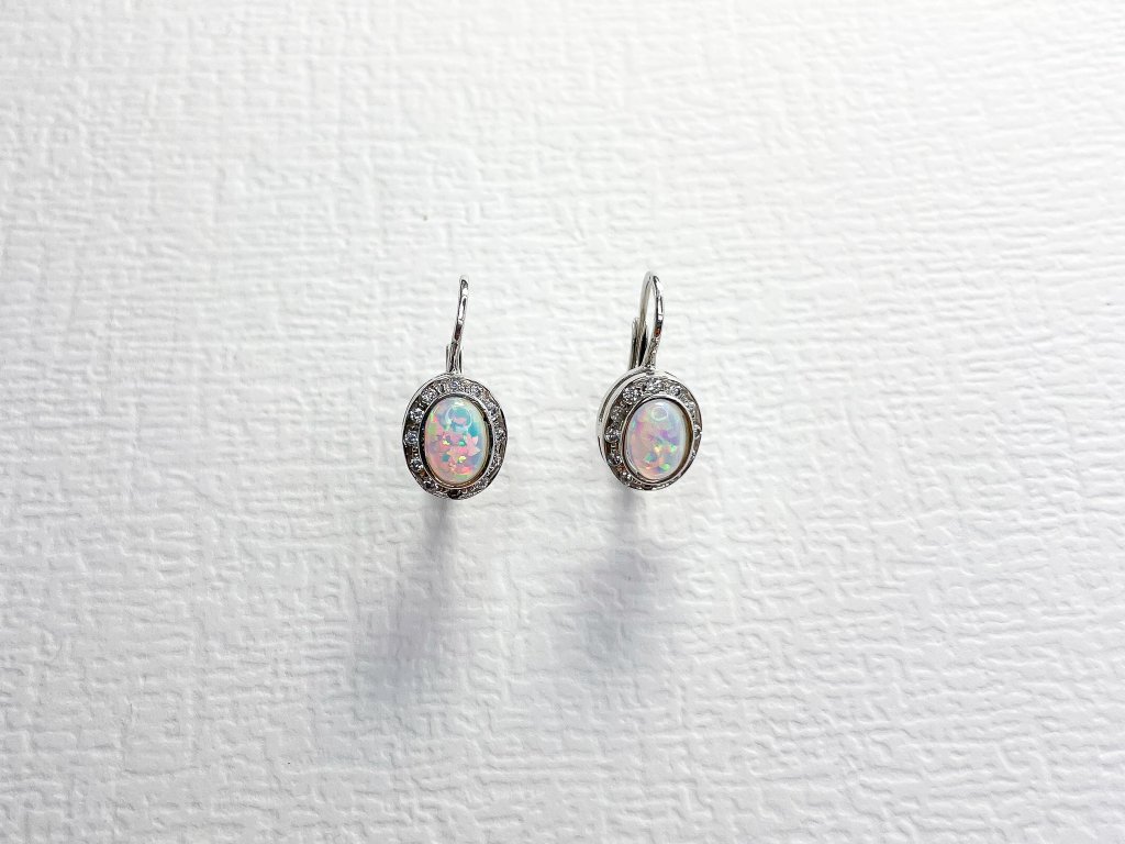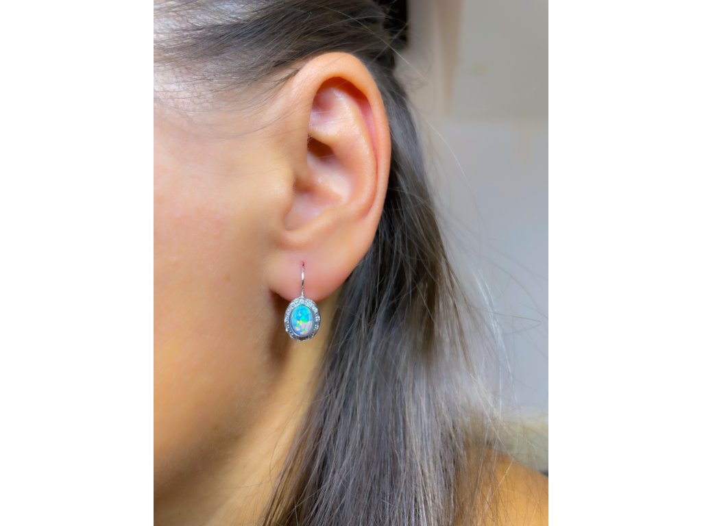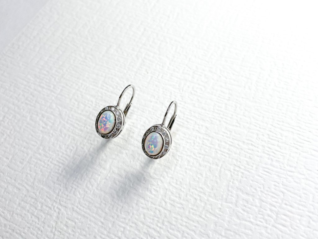 Zlaté náušnice s opálem a zirkony bílé zlato 2000218800001