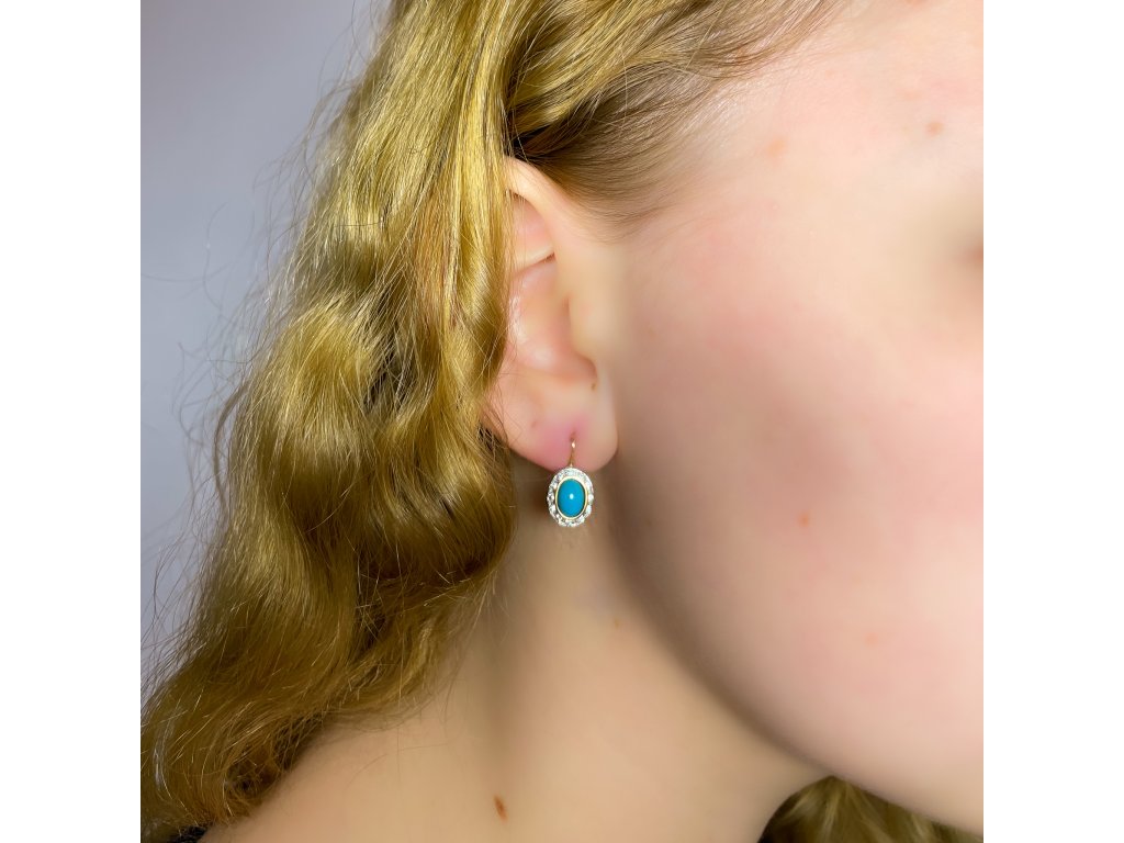 Zlaté náušnice s tyrkysem a zirkonem 2000219020002