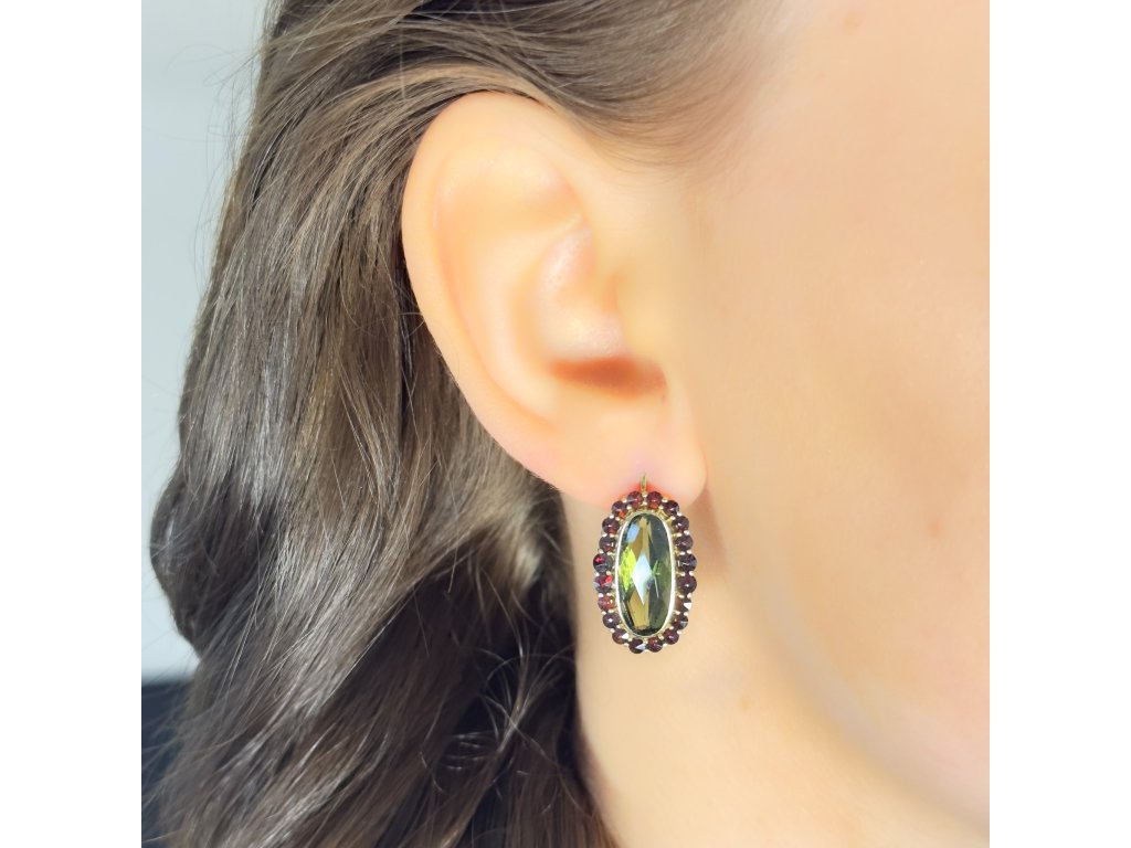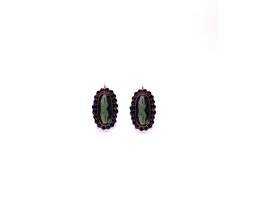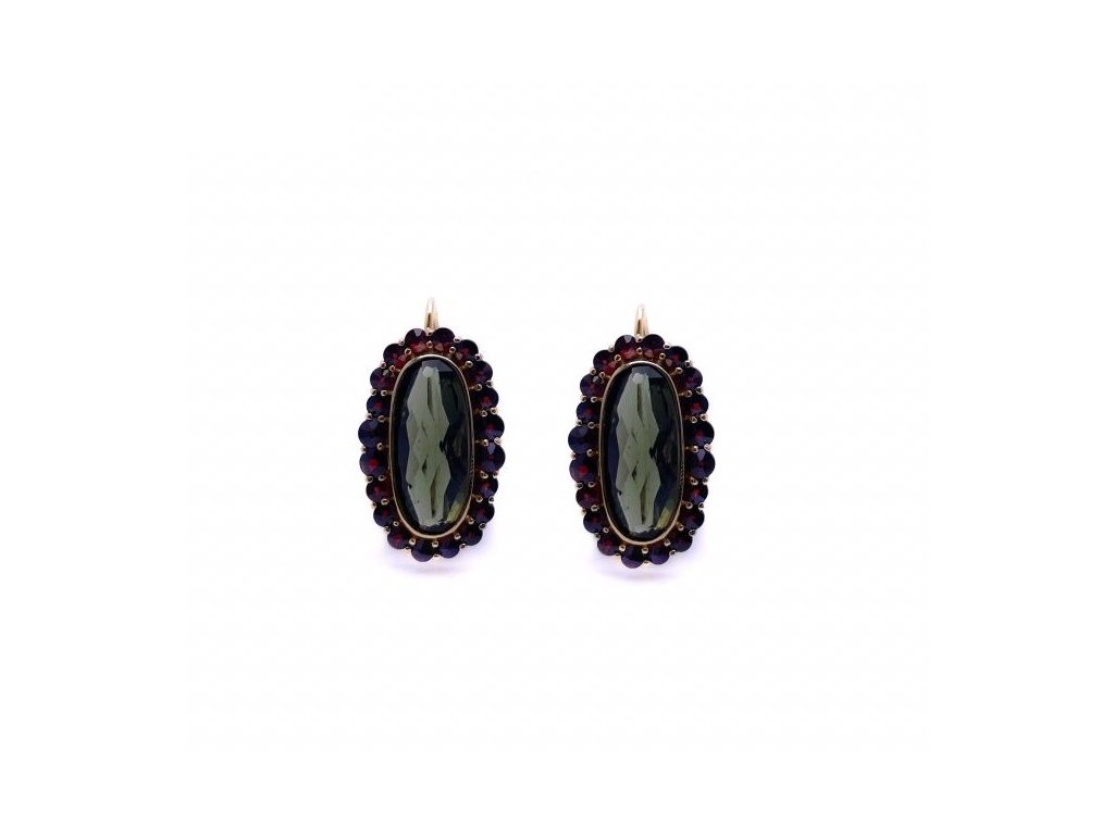 Zlaté náušnice s vltavíny a granáty 2000275190008
