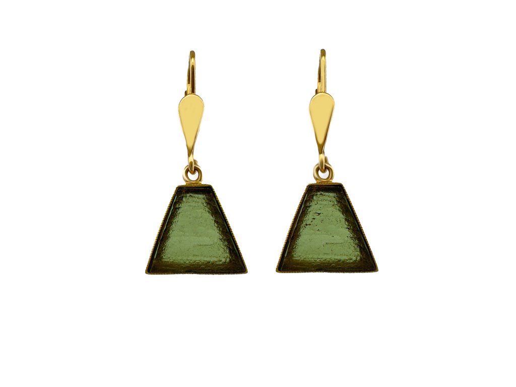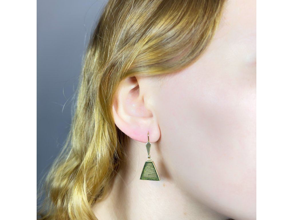 Tyto originální zlaté náušnice s polo-broušenými vltavíny zaujmou na první pohled! Krásná zelená barva a přírodní struktura dodá a zvýrazní krásu každé ženy. Precizní a minimalistické uchycení kamene je řešeno tak, aby zlato co nejméně rušilo, ale naopak zvýraznilo krásu vltavínu. Pevné zapínání je samozřejmostí! Je zde řešeno klasickým dámským patentem.