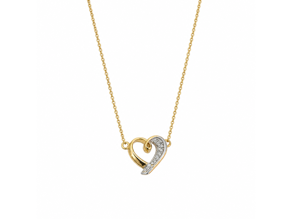 Tento jemný náhrdelník ze 14kt zlata zaujme svým romantickým designem ve tvaru propojeného srdce. Kombinace žlutého a bílého zlata vytváří elegantní kontrast, který podtrhuje moderní a zároveň nadčasový vzhled šperku.