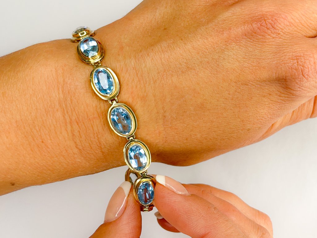 Zlatý náramek s modrým topazem 2000293550006