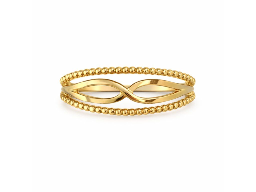 Tento originální prsten ze 14karátového zlata zaujme svým propracovaným designem, který kombinuje jemné kuličkové linie s elegantním symbolem nekonečna uprostřed. Nadčasový motiv ∞ symbolizuje věčnost, spojení a nekončící krásu, což z něj činí nejen stylový doplněk, ale i šperk s hlubším významem.