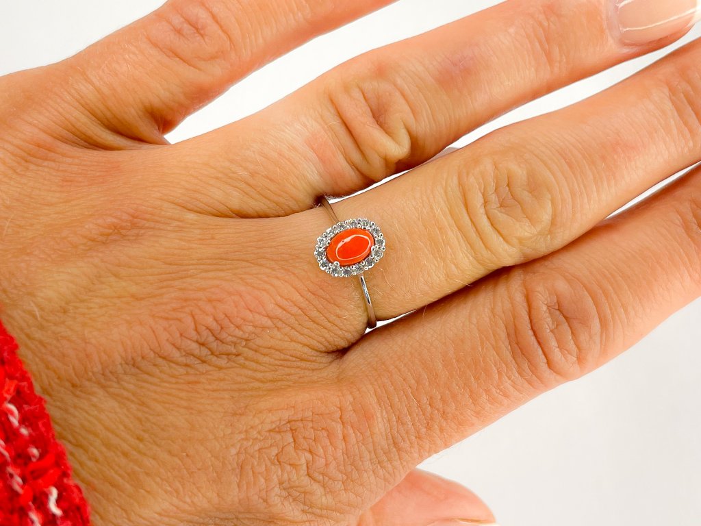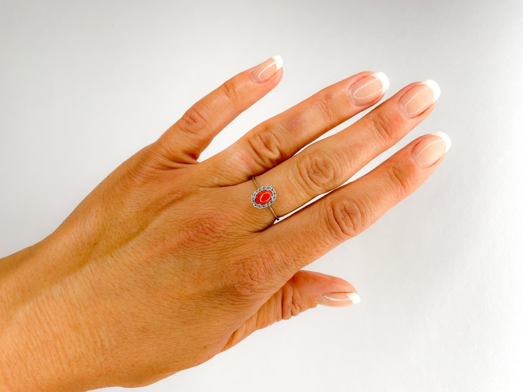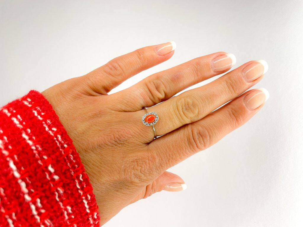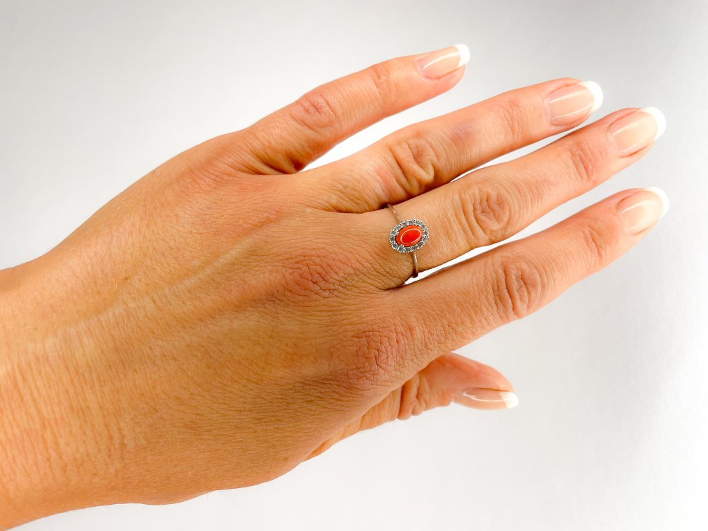 Zlatý prsten s korálem z bílého zlata 2000215290003