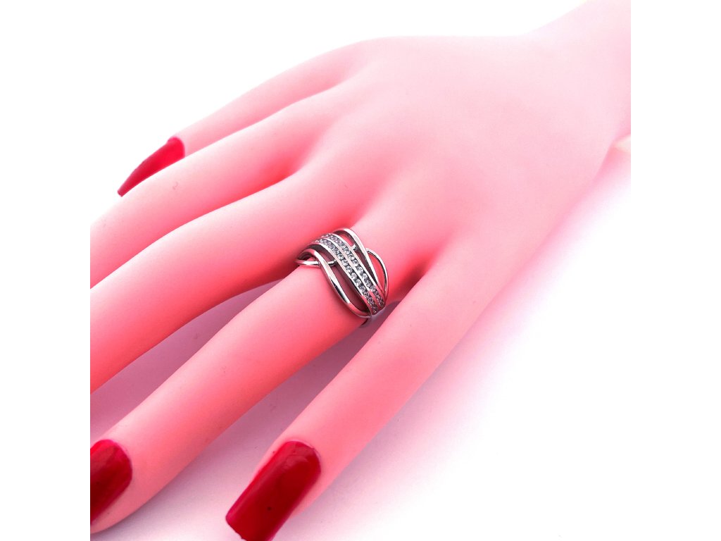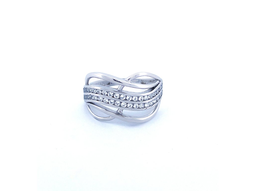 Zlatý prsten se zirkony bílé zlato 2000271300005