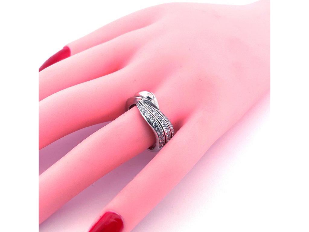 Zlatý prsten se zirkony bílé zlato 2000272830006